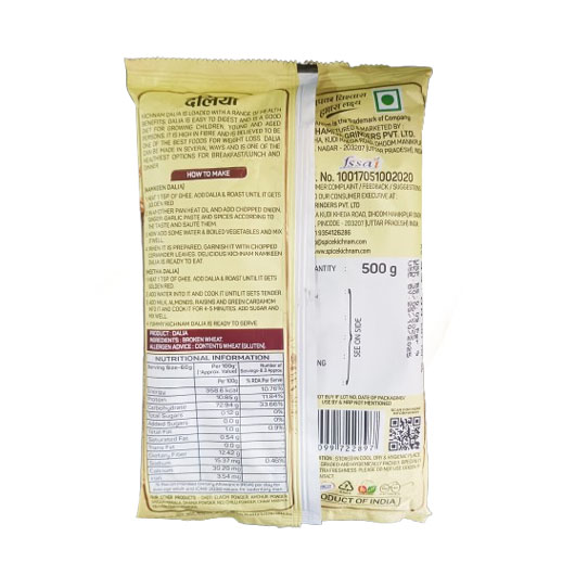 Start your day with the wholesome goodness of Kichnam Dalia, made from premium quality wheat grains. Rich in fiber, protein, and essential nutrients, this dalia is a perfect choice for a healthy and filling breakfast or light meal. Its natural taste and smooth texture make it ideal for preparing both sweet and savory dishes like upma, khichdi, porridge, or kheer.