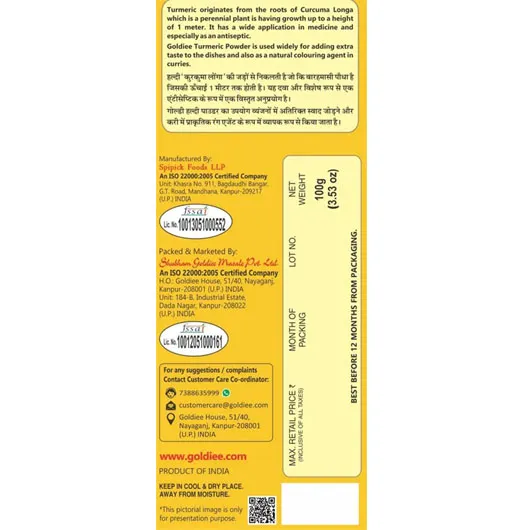 Whether you are making daily meals or festive dishes, Goldiee Haldi is your perfect cooking companion. Experience purity, taste, and tradition in every pinch!