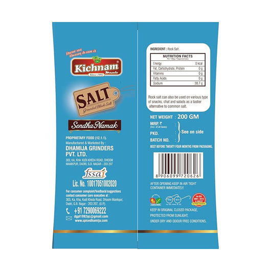 Perfect for daily cooking, fasting recipes, and traditional Indian cuisines, Kichnam Sendha Namak adds a natural touch to your meals without any additives or preservatives. Its fine texture and pure form make it suitable for seasoning, garnishing, or even health remedies.